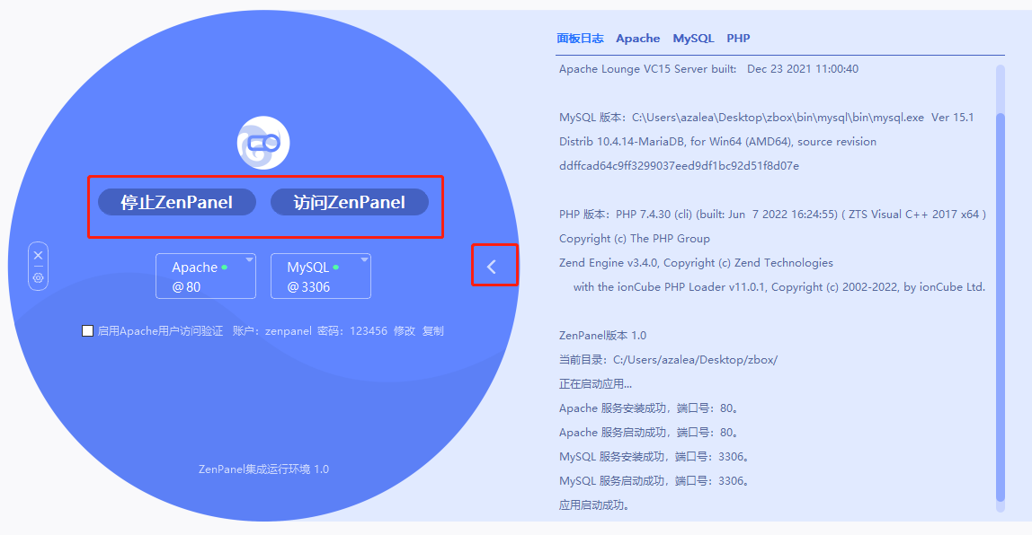 2. ZenPanel集成运行环境使用说明