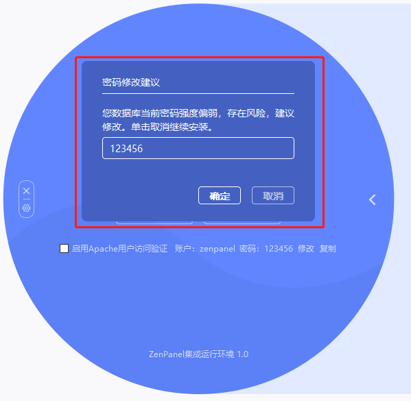 启动服务会检测MySQL的密码强度,密码强度比较弱会提示修改。