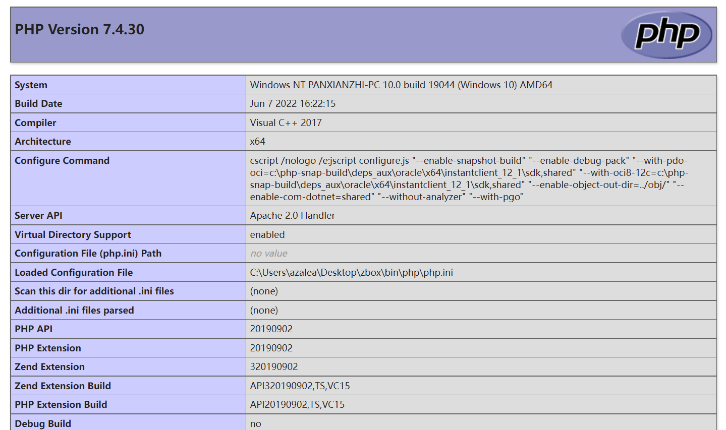 点击访问按钮,可以访问到集成测试环境的PHPinfo页面。